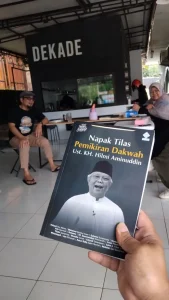 Dapat giliran terakhir. Di tangan saya ada buku “Napak Tilas Pemikiran Dakwah Ust. K.H. Hilmi Aminuddin”. Saya sampaikan ada nasehat yang — kurang lebih — mengarahkan kita untuk mengambil nasehat dari orang yang sudah wafat. Mengapa? Karena mereka sudah ketahuan ujung hayatnya. Kita bisa meraba-raba mereka husnul khotimah atau sebaliknya su’ul khotimah. Pun mengutip perkataan Imam Syafi’i bahwa ilmu sejatinya yang sudah diamalkan bukan sebatas hafalan. Bahwa saya selektif pada bacaan. Dan menjadikan variabel praktek lapangan penulis buku sebagai parameter.